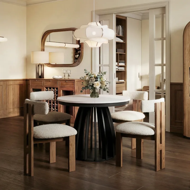 Okrągły, rozkładany stół VENO o wymiarach 140/180 cm to nowoczesny stół jadalniany, który łączy elegancki styl z funkcjonalnością i doskonale pasuje do nowoczesnych wnętrz.